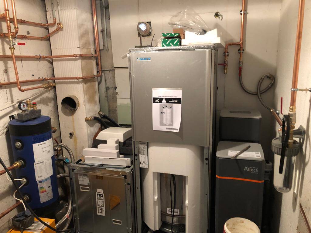 La pompe à chaleur utilise l'énergie présente dans l'air, l'eau ou le sol pour produire de la chaleur. Elle permet de chauffer une maison tout en réduisant considérablement la consommation d'énergie par rapport aux systèmes traditionnels. La PAC installée ici est un modèle Daikin, une marque reconnue pour sa qualité et ses performances.